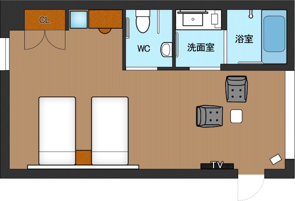 身障者やご年配の方が安心してご宿泊いただけるバリアフリータイプのお部屋です。