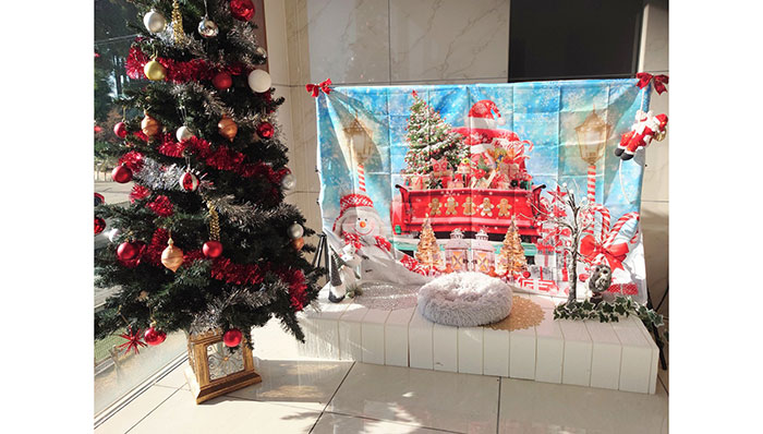 ホテル館内にクリスマスのフォトスポットをご用意いたしました。ワンちゃんと一緒に記念撮影しませんか?