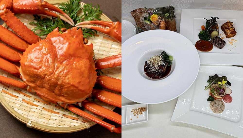 解禁 ブランド柴山松葉蟹の食べ尽くしと瀬戸の鯛タコ穴子の贅沢三昧フルコースディナー 香住柴山港から直送の松葉蟹の味覚を、先付け、前菜、お造り、蒸し物、焼物、鍋物、雑炊まで多彩なお料理でご堪能いただけるカニのフルコースです。 |